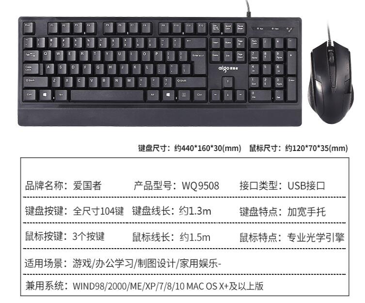 愛國者9508電腦鍵鼠套裝有線鍵盤鼠標USB接口臺式筆記本辦公家用