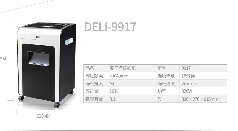 得力9917文件離子凈碎紙機辦公商用機密資料粉碎機3級保密