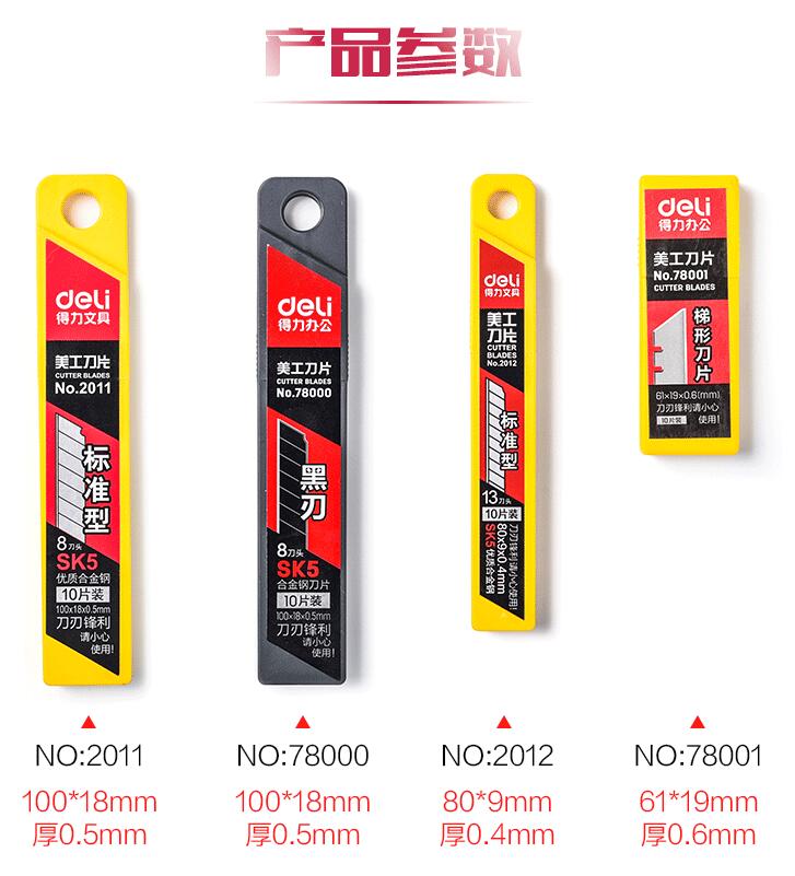 得力美工刀片 標(biāo)準(zhǔn)型8盒(80片) 用30度雕刻貼膜專用墻紙壁紙大碼梯形刀片切紙80片裝批發(fā)